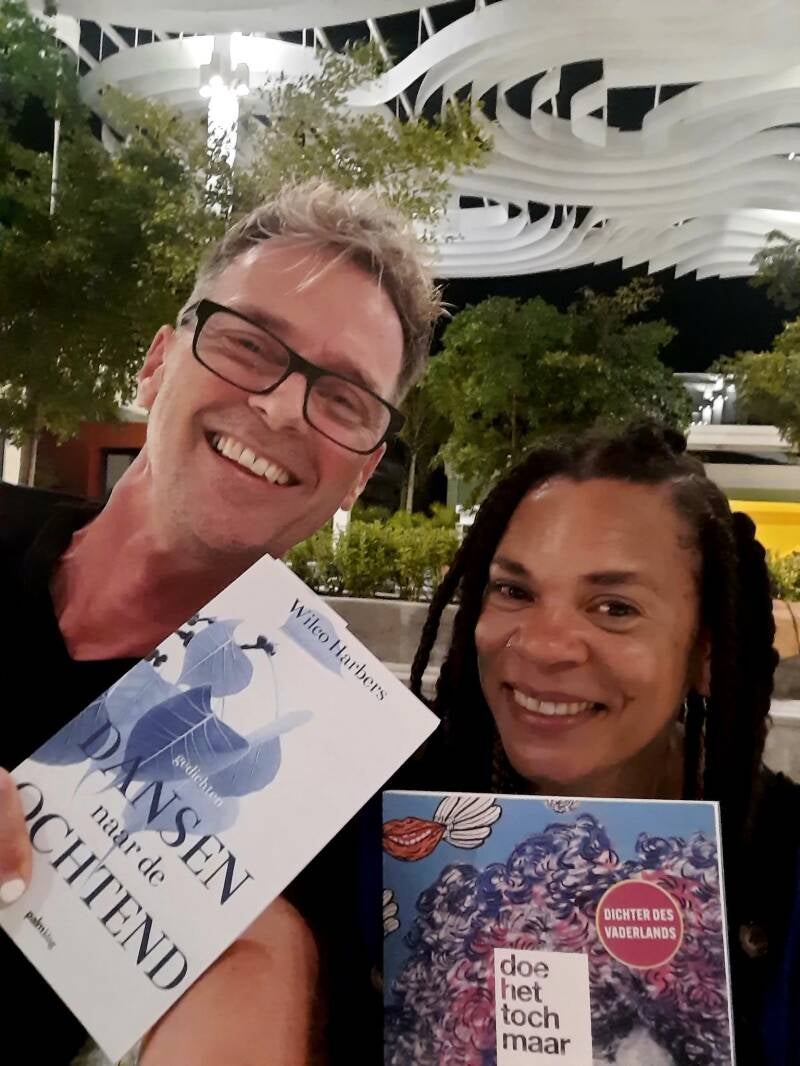 Samen met Ini Statia en Delno Tromp werden met haar enkele nieuwe, veelbelovende plannen besproken rondom zijn dichtbundel 'Dansen naar de ochtend'.